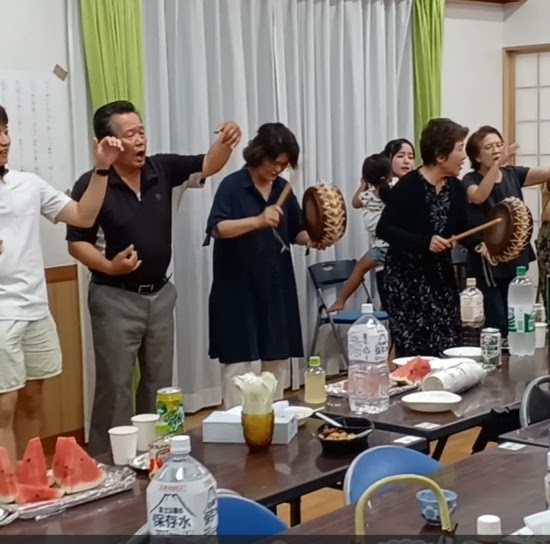 安木屋場集落区長の阿世知正博さんは、「八月踊りの練習会に多くの人が参加してくれた。ふれあい食堂と抱き合わせ開催でよかった。」と述べていました。