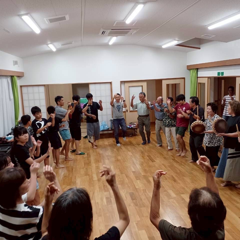安木屋場集落の皆さん・龍郷集落から参加してくださった親子で賑わいました。食事の後も、安木屋場集落の威勢がいい八月踊りを満喫しました。